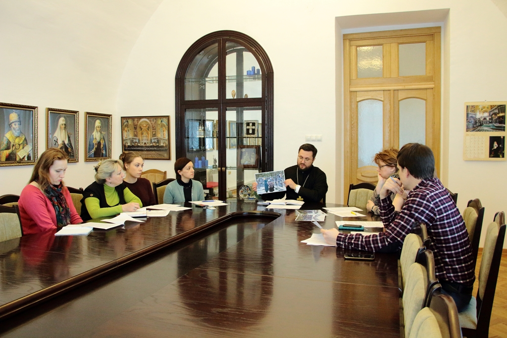 2 апреля в Зале заседаний Смоленского епархиального управления состоялась встреча представителей организаций-партнеров проекта: представителей Смоленской епархии, Духовно-Просветительского центра храма св.Новомучеников церкви русской, представители Департамента образования и Смоленского государственного института искусств. Наш колледж на встрече представляли – директор колледжа Зенкина А.В и руководитель проекта преподаватель Зотина А.Н. В ходе встречи были определены кураторы проектных направлений, конкретизированы сроки проведения мероприятий, подготовлены материалы для проведения первой встречи добровольцев.
