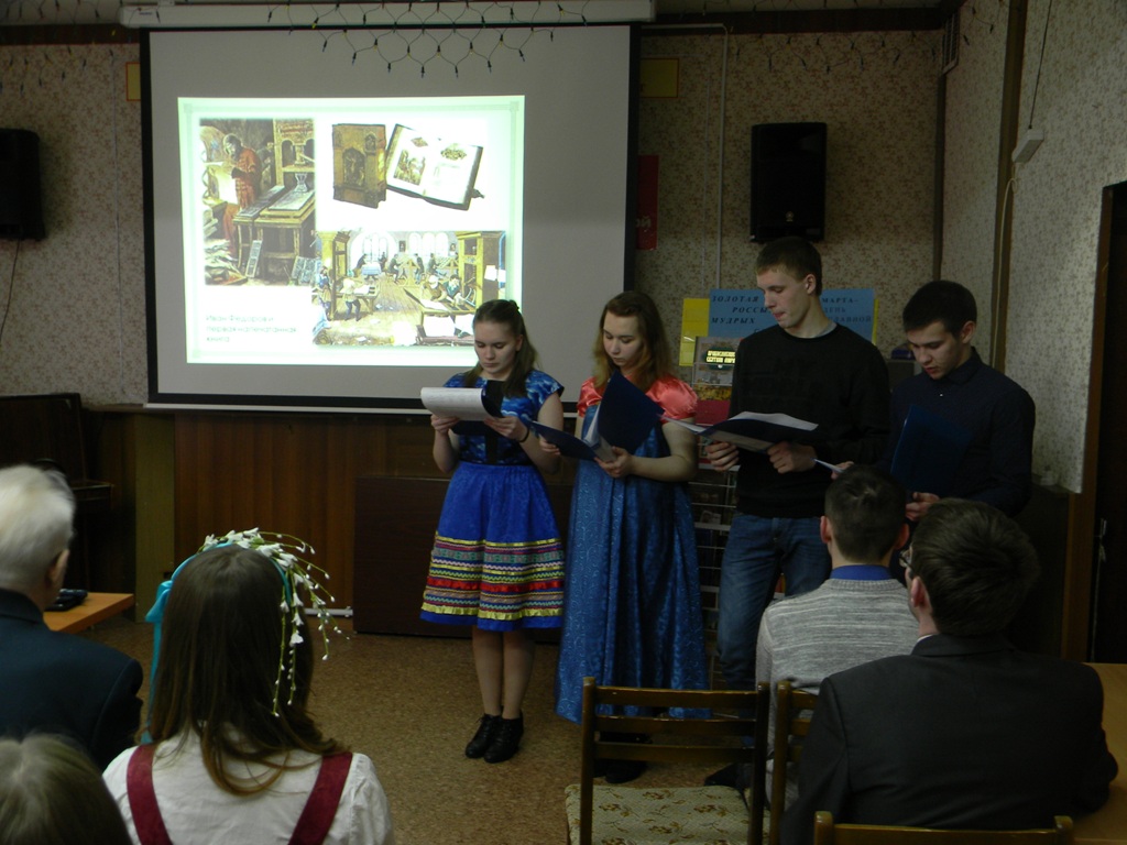 14 марта в нашей стране отмечается новый праздник - День православной книги. По традиции смоленские студенты-строители готовят праздничную программу для читателей областной библиотеки слепых, с которой у нас заключен договор о сотрудничестве в духовно-нравственном воспитании обучающихся. Наши ребята-первокурсники из группы СД-1-15 под руководством своего классного руководителя Зотиной А.Н совместно с Духовно-просветительским центром при храме св.Новомучеников и Исповедников Церкви Русской в лице иеромонаха Николая (Золотова), .выступили с литературно-музыкальной композицией "Дорогою добра", Вначале встречи с приветственным словом выступил иеромонах Николай, а затем наши ребята в национальных русских костюмах показали презентацию, в которой рассказали об истоках зарождения русской литературы, создании первых рукописных книг на Руси, о подвиге святых равноапостольных братьев Кирилла и Мефодия не только создавших славянскую азбуку и церковно-славянский язык, но и переведших на славянский язык великие христианские духовные книги. Сегодня как никогда ранее очень важно единство славянского мира, прекращение противостояния между братскими украинским и русским народами. Студентка группы СД-1-15 Анцупова Светлана, ранее проживавшая на Донбассе, прочла для присутствующих стихотворение на украинском языке известной поэтессы Леси Украинки, о любви к своей родной Украине. Вместе с читателями библиотеки студенты разучили и исполнили песню "Дорогою добра". Слабовидящие читатели библиотеки читали свои стихи и участвовали в викторине, подготовленной студентами-дорожниками, посвященной книгам. После окончания мероприятия всех участников праздника ждал чай со сладким угощением.
