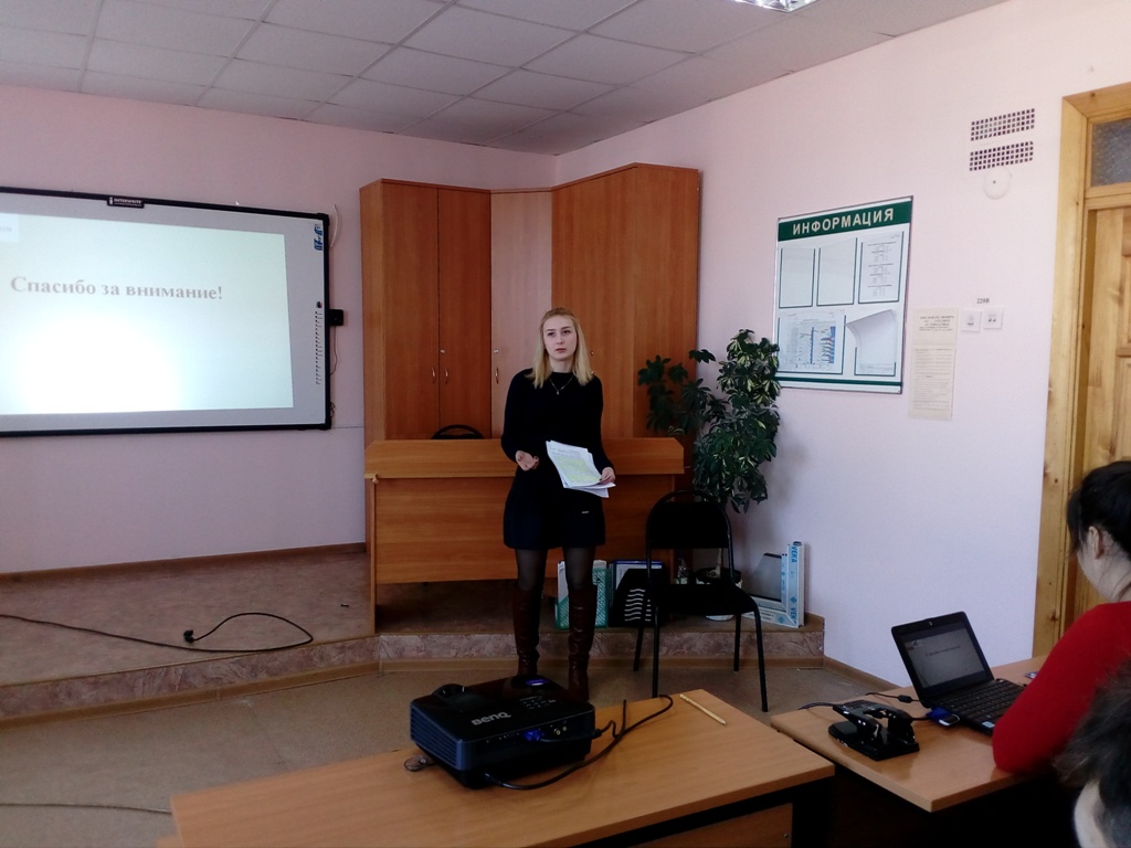 По итогам практики 1 ноября 2016 проведена конференция, на которой выступали студенты. Кустикова Анастасия подготовила содержательное выступление с красочной презентацией, в которой она рассказала о том, как проходила практику в ООО «Бином». Её выступления дополнили Костюкова Алина и Матвеева Александра.