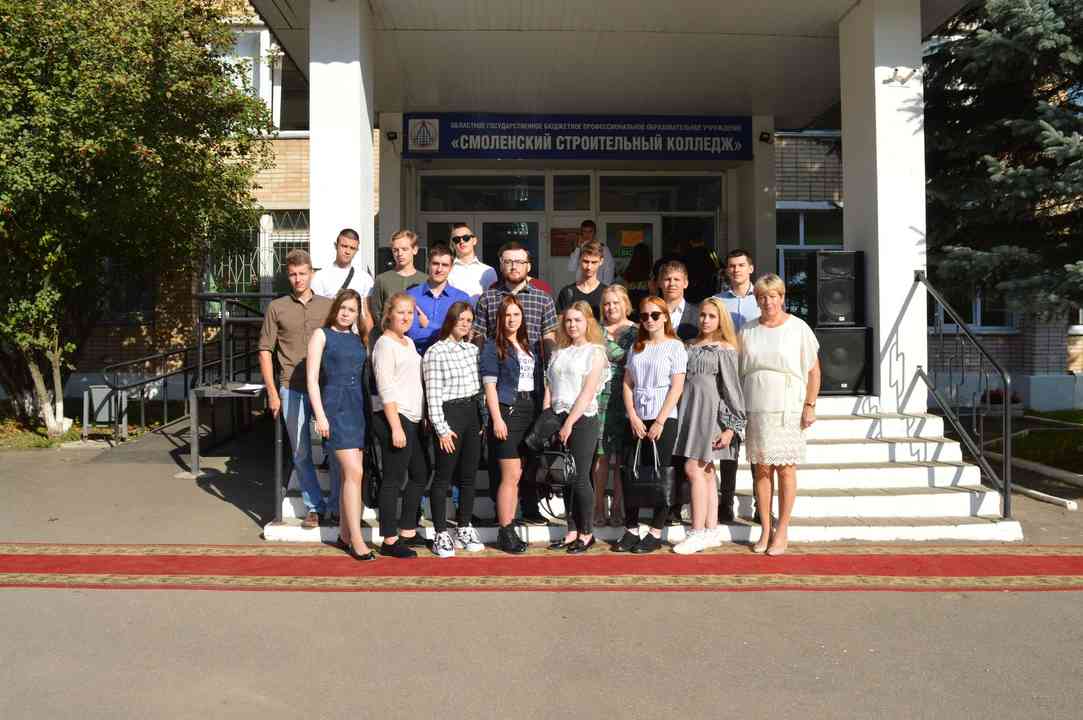 02 сентября 2019 года в Смоленском строительном колледже прошла тожественная линейка, посвященная Дню знаний и началу нового учебного года. Более 400 новых студентов пополнили ряды обучающихся колледжа. Под звуки гимна был поднят российский флаг. С приветственным словом обратились начальник отдела профессионального образования и науки Департамента Смоленской области по образованию и науке М. А. Иваненкова, директор колледжа А. В. Зенкина, заместитель генерального директора А СРО «Объединение Смоленских строителей» О. Н. Аббасов, настоятель Храма Св. Новомученников и Исповедников Церкви Русской, руководитель епархиального отдела по работе со СМИ и общественностью протоиерей Валерий Рябоконь. На линейке были вручены сертификаты на именные стипендии лучшим студентам колледжа. Творческие выступления всем присутствующим подарили гости из Смоленского педагогического колледжа. После проведения торжественной части во всех группах колледжа прошли организационные классные часы.