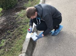 Продолжилось участие студентов дорожного отделения в волонтерской акции Накануне главного христианского праздника Пасхи 10 апреля 2017 года студенты дорожного отделения из группы СД-1-16 под руководством преподавателя А.Н.Зотиной вновь стали участниками волонтерской акции по благоустройству территории православного храма Новомучеников и Исповедников Церкви русской. Ребята получили задание - покрасить бордюры на прихрамовой территории. Эта работа требует аккуратности, терпения, а также соблюдения технологии. Самыми лучшими малярами оказались Александра Гуня, Влад Путров, Артем Копытов, Артем Харин и Корольков Валера и Польшин Егор. Работа была выполнена качественно и быстро. В благодарность от настоятеля храма иерея Валерия Рябоконь волонтеры получили сладкие подарки: печенье и конфеты.