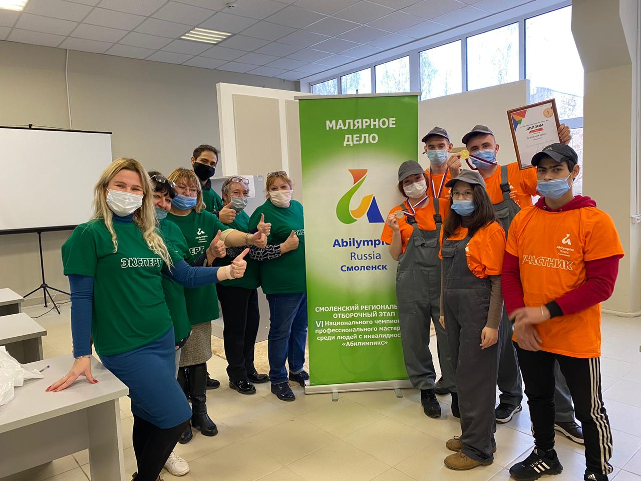 09-10 ноября 2020 года на базе учебно-производственной мастерской по компетенции «Малярные и декоративные работы» ОГБПОУ «Смоленский строительный колледж» состоялся региональный отборочный этап VI Национального чемпионата по профессиональному мастерству среди инвалидов и лиц с ограниченными возможностями здоровья «Абилимпикс» по компетенции «Малярное дело». По результатам работы экспертной комиссия во главе с главным экспертом по компетенции С.В.Лакомкиной – директором ООО «Отделка» участники заняли следующие места: