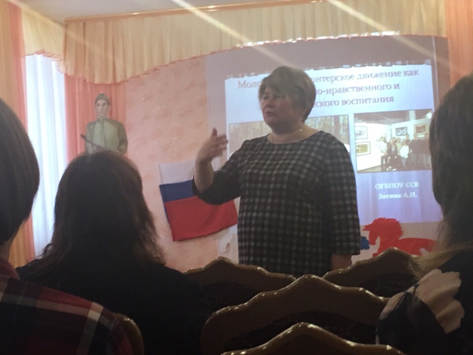 Участниками семинара стали представители образовательных учреждений, духовенства, общественных и ветеранских организаций – то есть, все, кто имеет самое непосредственное отношение к формированию правильных жизненных ценностей в новых поколениях смолян и граждан всей России. Наши ребята подготовили для творческого мастер-класса, которым открылся семинар свое выступление, посвященное князю Александру Невскому, а в ходе практического обсуждения проблем патриотического воспитания молодежи А.Н.Зотина выступила с докладом на тему «Волонтерство как форма духовно-нравственного и патриотического воспитания студентов ССК». Представители различных образовательных организаций, а также СОИРО с интересом познакомились с опытом нашего колледжа в формировании духовных ценностей у обучающихся колледжа.
