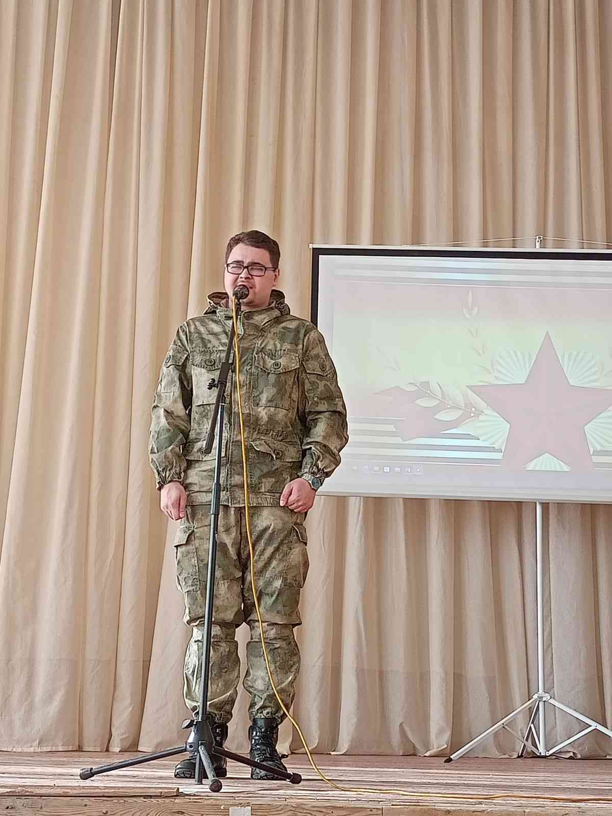К мероприятию студенты колледжа подготовили концертные номера, которые создали атмосферу единства и сплоченности, вызвали эмоциональный отклик в душах собравшихся. В честь героев звучали стихотворения в исполнении студентов (Прохоров Максим, группа ЖКХ-1-22), песни (Золотарев Даниил группа МСП-1-20, Ковалев Степан, группа ЖКХ-1-21), студентки Пахомова Анастасия и Коваленко Дарья (группа Т-1-22) выступили с танцем.
