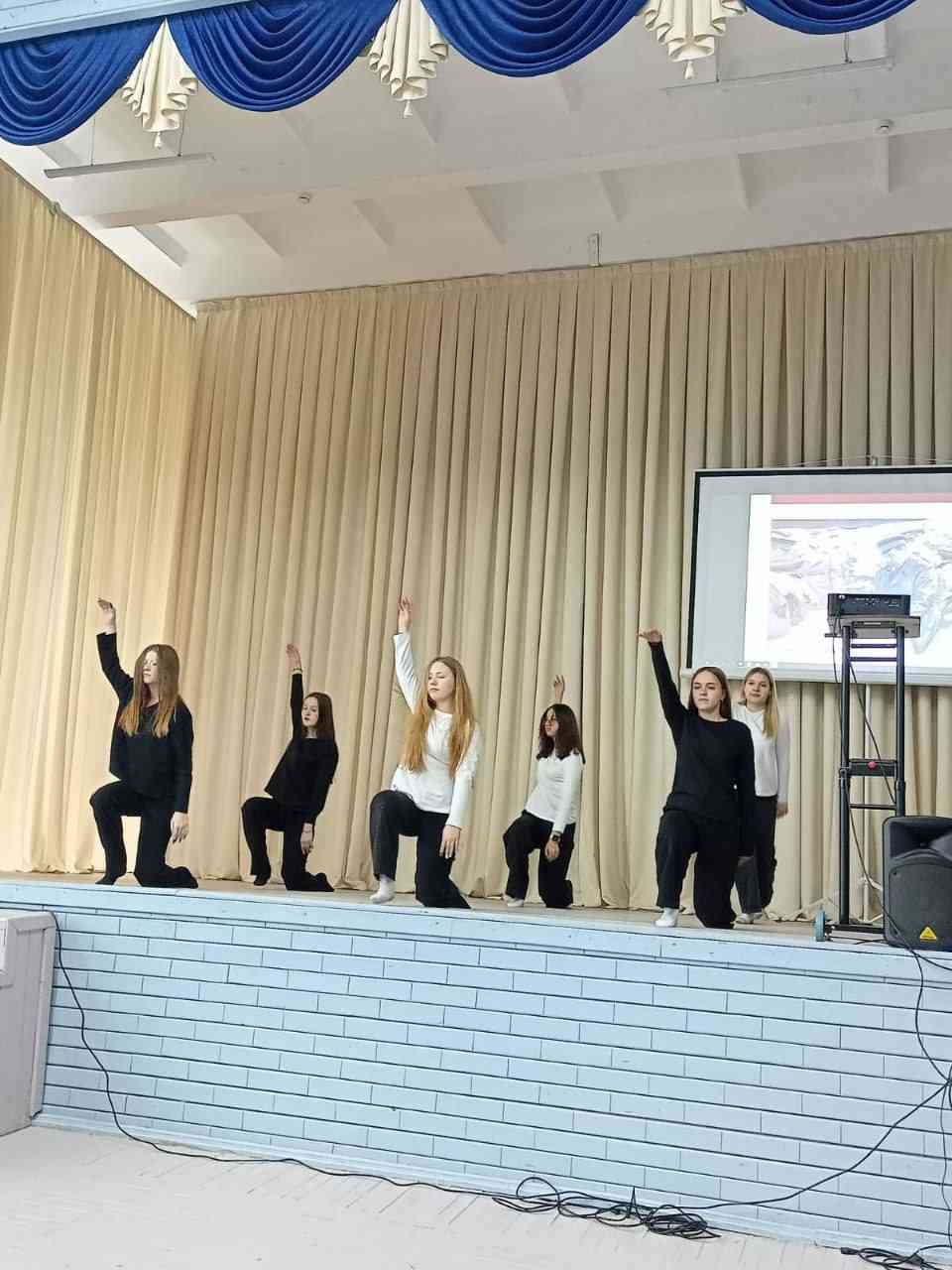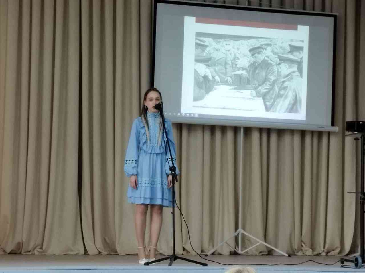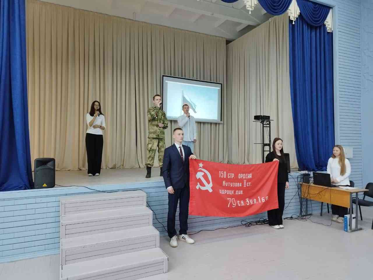 На мероприятии вспомнили основные события и факты о Великой Отечественной войне, посмотрели документальные кадры. Звучали стихи и песни военных лет, исполнялись танцевальные композиции. Традиционно, была почтена память о всех погибших минутой молчания, возложены цветы к памятному знаку воинам-интернационалистам. В заключении исполнена песня "Мы поднимаем флаг моего государства", под которую вынесли копию Знамени Победы. Зал встал, что было очень символично и важно! Завершила мероприятие песня " День Победы".