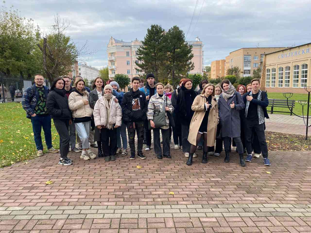 1 октября 2023 года студенты из групп А-1-20 и А-2-20 и преподаватели Рыжова П.А. и Хасанова А.А. стали участками интерактивной выставки «Архитектура Смоленска: взгляд молодых», которую для студентов провели сотрудники кафедры дизайна ФГУ ВО «Смоленский государственный университет» Жахова И.Г. и член Союза архитекторов России Ткаченко В.В.
