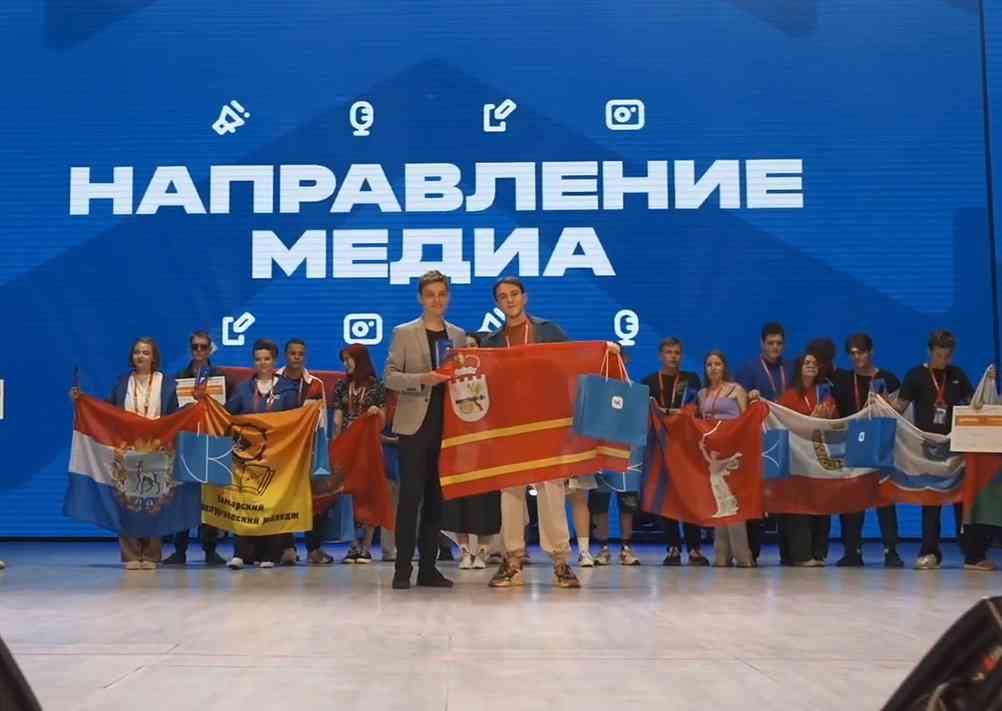 В команду Смоленской области от нашего колледжа вошли студентка группы А-1-21 Лина Дмитрик и члены команды медиацентра нашего колледжа "ССК-Медиа", Максим Конев и Репьёва Дарья.