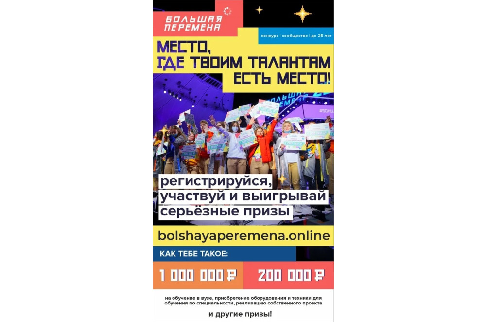 Изучай номинации конкурса на сайте: https://bolshayaperemena.online
