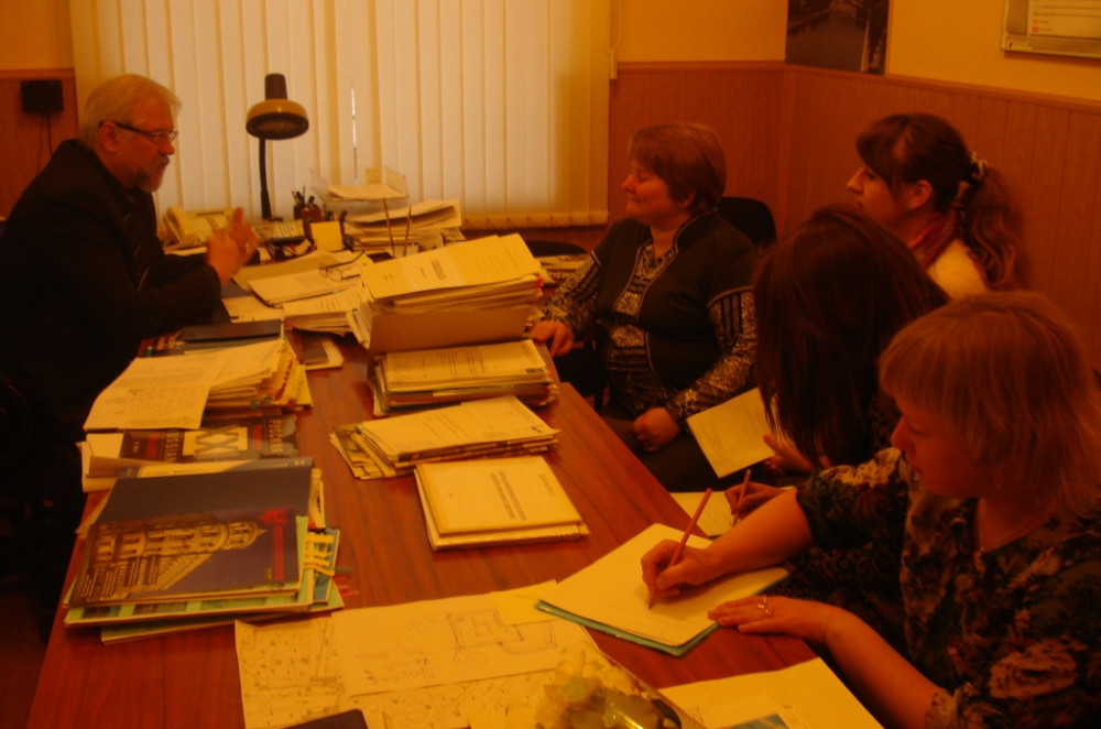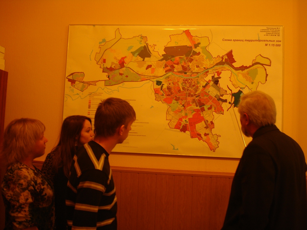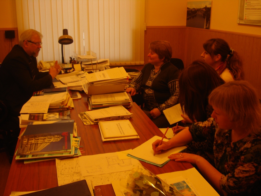 Группа студентов – третьекурсников, проводящих исследование на тему «Понимание красоты в градостроительной деятельности», вместе со своим научным руководителем Зотиной Аллой Николаевной 14.02.2013 г побывали в Управлении Архитектуры и градостроительства Администрации города Смоленска, где встретились с главным архитектором города - Ляденко Борисом Владимировичем и начальником отдела территориального планирования и градостроительных регламентов управления- Красильниковой Еленой Валентиновной.