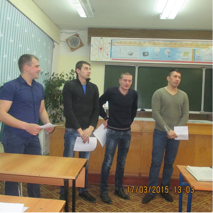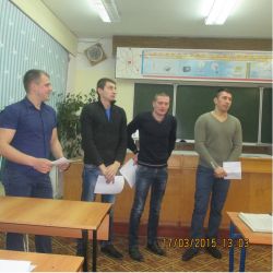 Первая группа: Загорельсикй Владисла, Дьяченко Андрей, Рамазанов Константин, Трубаев Артем, Романенко Николай, тема фильма «Блоки из полистиролбетона,» руководитель: преподаватель строительных материалов Фомина Елена Фонильевна.