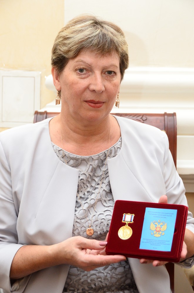 Памятная медаль «Патриот России» вручена председателю совета классных руководителей, преподавателю общих гуманитарных и социально-экономических дисциплин Смоленского строительного колледжа Ирине Геннадиевне Голушко.