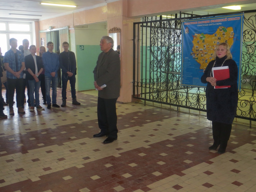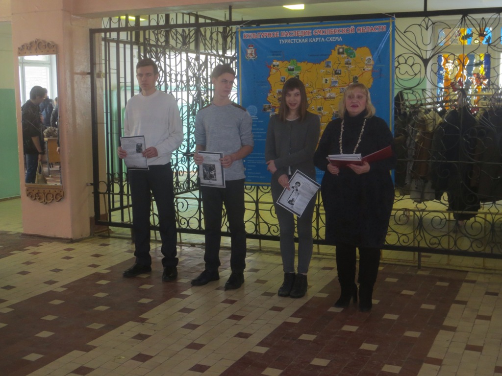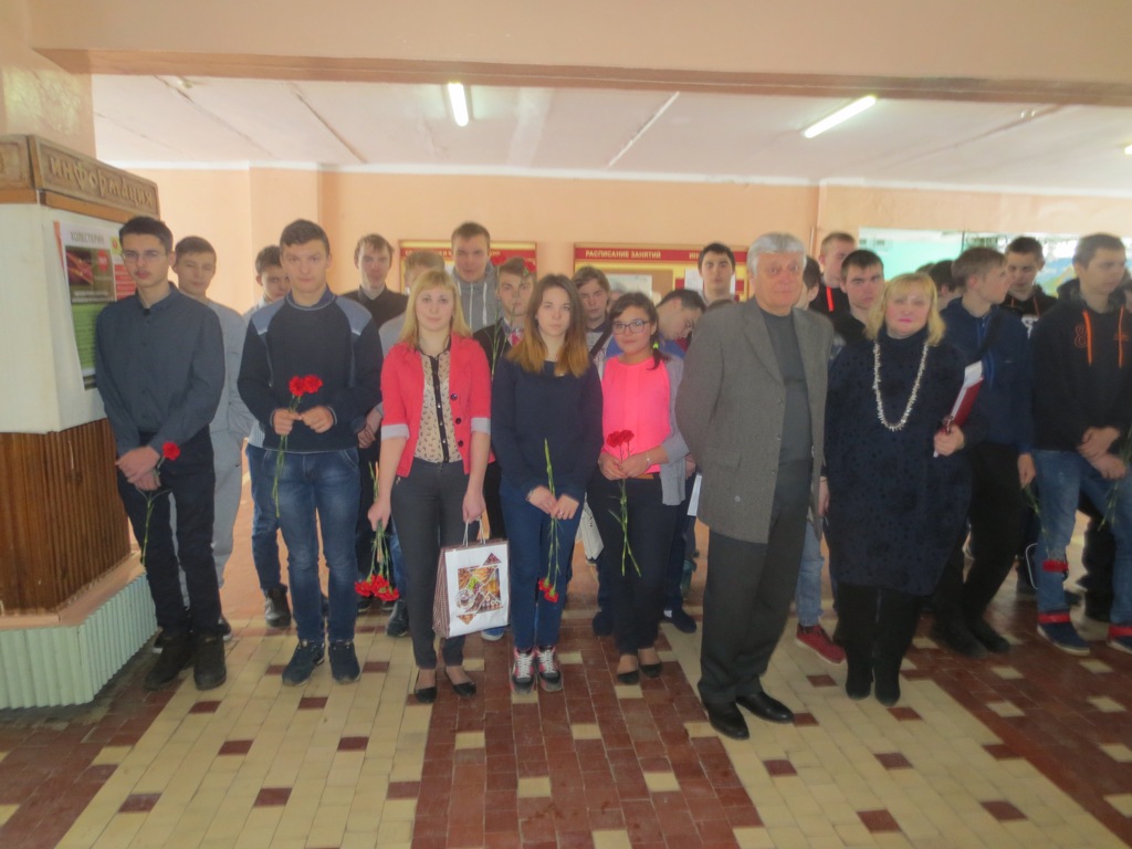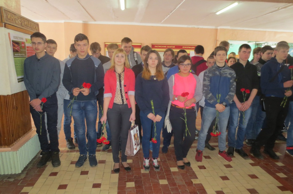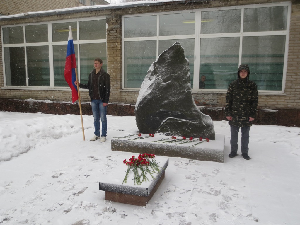 Наши студенты ответственно отнеслись к проводимому митингу: Замамыкина Елизавета (гр. СТ-1-16), Мозалев Кирилл (гр. ЭГС-22-15) читали патриотические стихи, обучающиеся группы СТ-1-16 подготовили небольшие сообщения из жизни пяти героев-интернационалистов, чьи имена высечены на памятном знаке. Это Исаков Николай, Савченко Геннадий, Степанян Владислав, Томилин Сергей, Чурилин Алексей, их имена внесены в книгу Памяти о павших воинах-смолянах в боевых действиях в Афганистане. Память о погибших почтили минутой молчания. Лучшие обучающиеся каждой группы возложили цветы к памятному знаку.