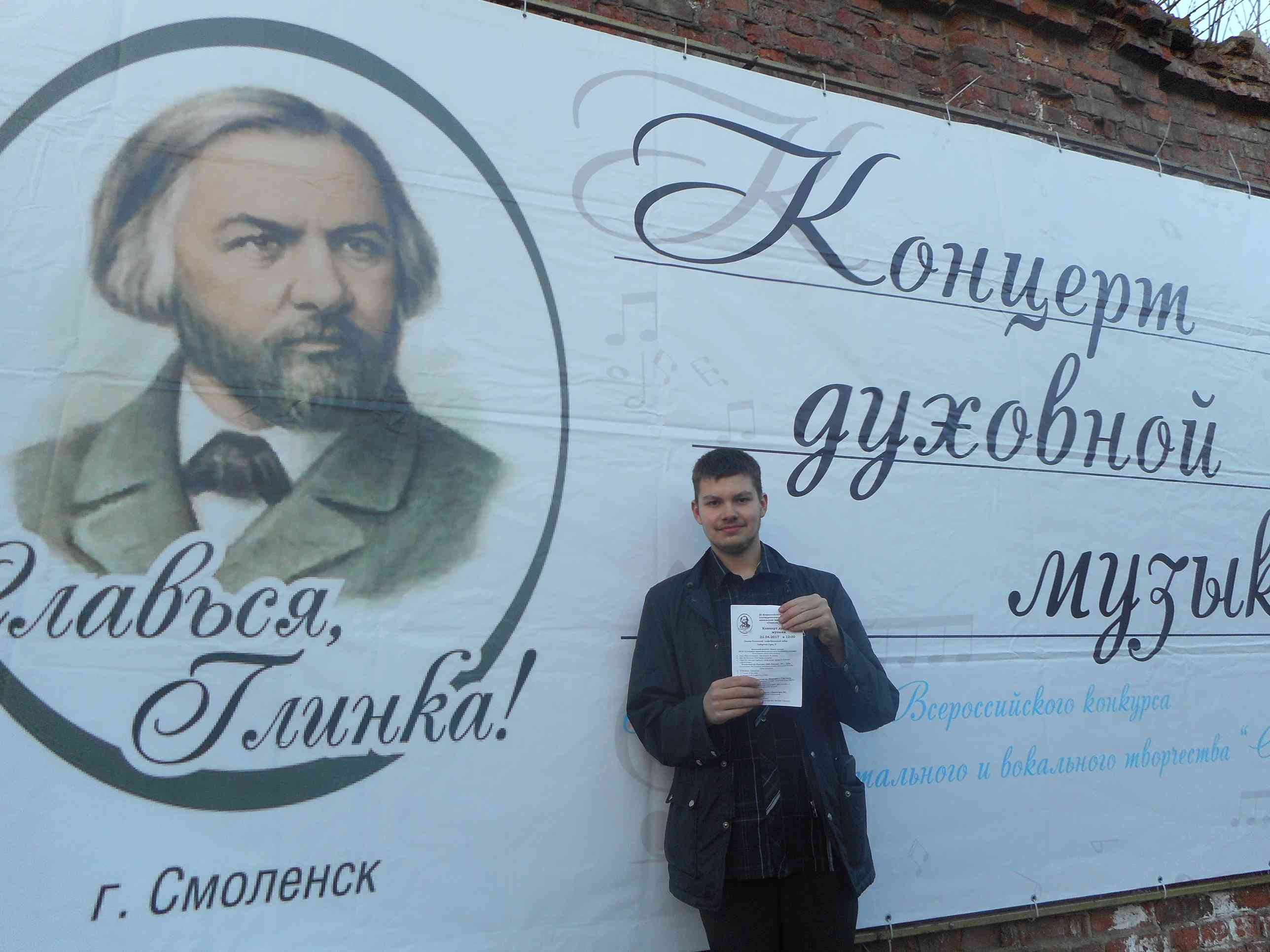 23 апреля 2017 года студент Смоленского строительного колледжаВсеволод Пастарнаков посетил епархиальное мероприятие - концерт духовной музыки «Славься, Глинка» в Смоленском Свято-Успенском кафедральном соборе. Смоленский строительный колледж поблагодарили за активное участие в епархиальных мероприятиях.