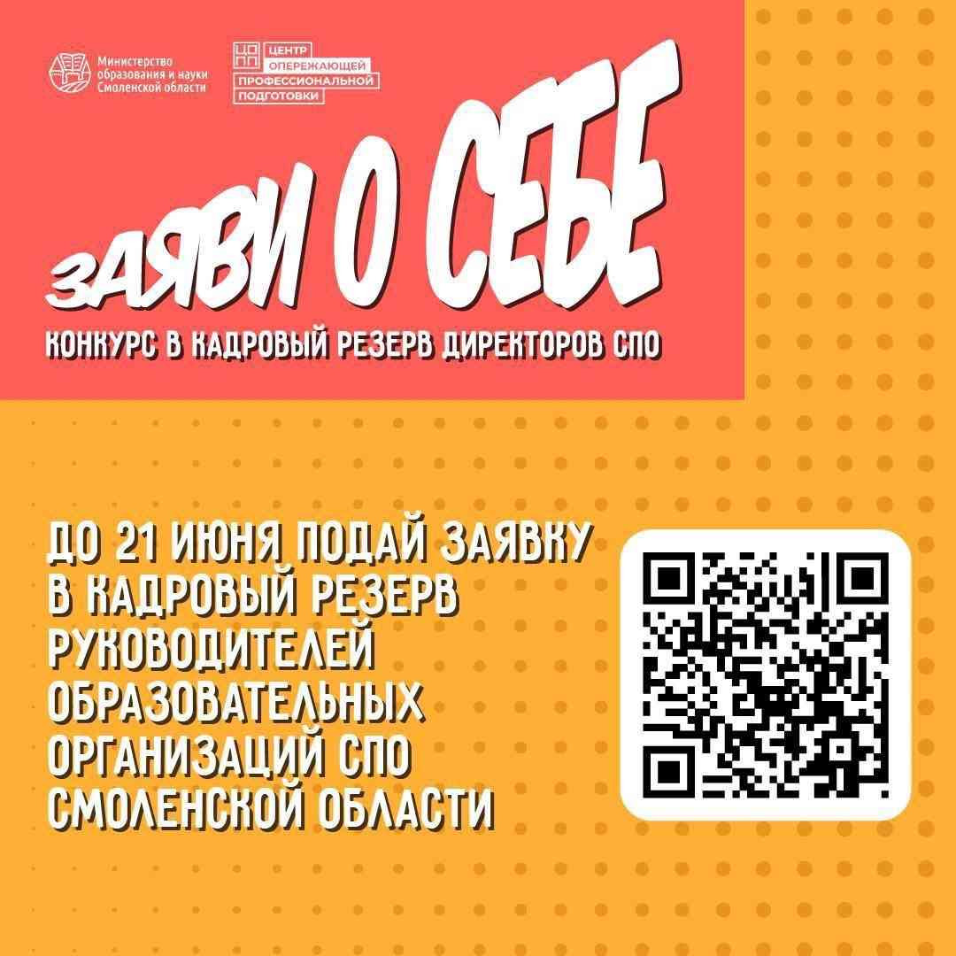 Стартовал конкурс кандидатов в кадровый резерв системы среднего профессионального образования нашего региона. Подать заявку на участие можно до 21 июня: https://forms.yandex.ru/u/665d7bf2d0468858d59bed04/