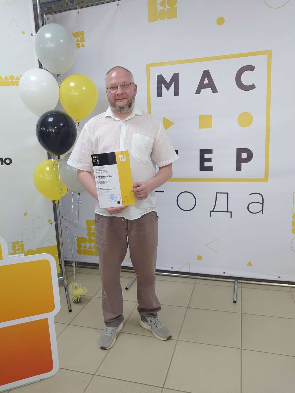 По итогам конкурса Фомин Сергей Владимирович отмечен сертификатом участника Конкурса, а Постарнаковой Галине Леонидовне присвоено звание «Лауреат регионального этапа Всероссийского конкурса «Мастер года» в 2024 году!