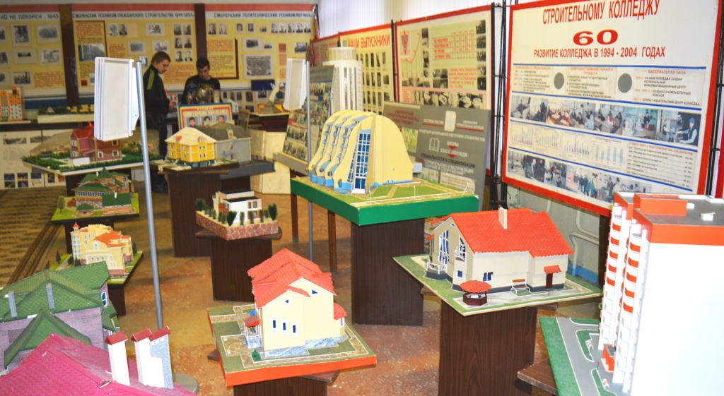 В музее находятся макеты архитектурных зданий, как результат выполнения курсовых и дипломных проектов студентами колледжа под руководством преподавателей. При их изготовлении используются современные конструктивные решения с элементами исследовательского характера и новейших достижений в технологии строительства. Макеты являются наглядным пособием при изучении дисциплин профессионального цикла и центром внимания посетителей выставочных павильонов г. Смоленска и г. Москвы
